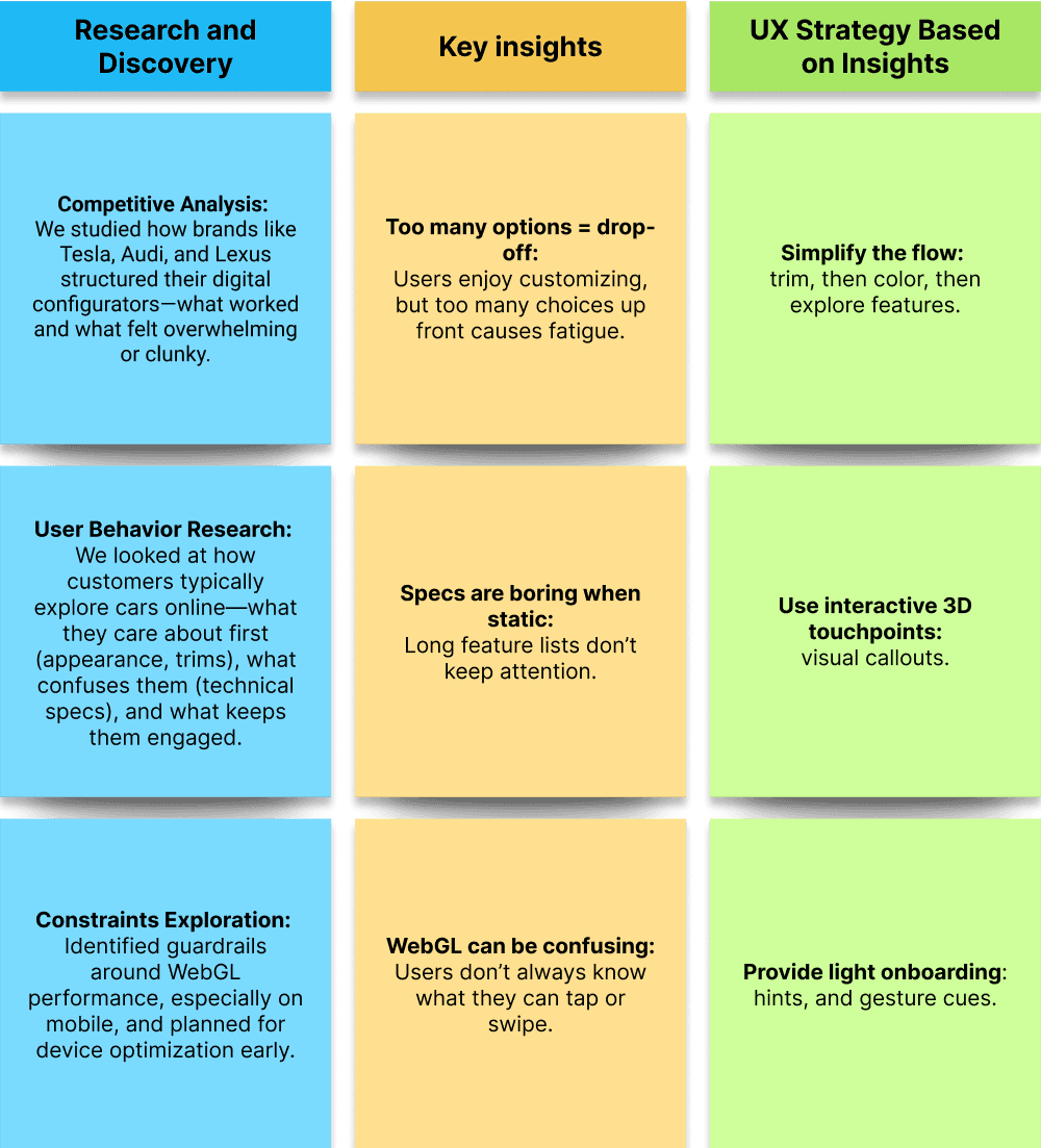 We approached this project with a user-first mindset, balancing visual storytelling with technical performance. The goal was to create an experience that was immersive, intuitive, and informative—whether users were browsing casually or actively researching their next vehicle.